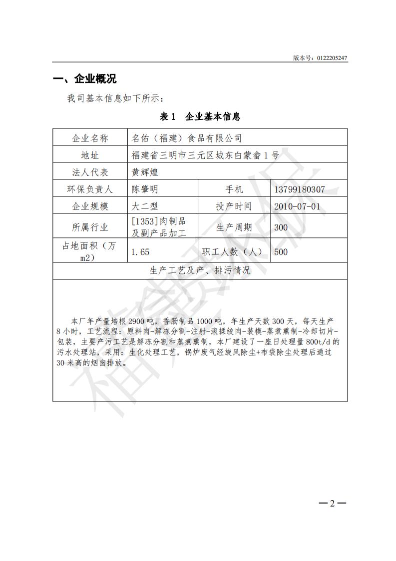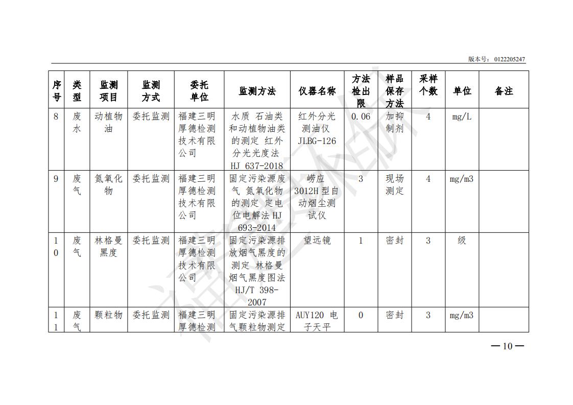 名佑(福建)食品有限公司2019年度环境自行监测方案信息
